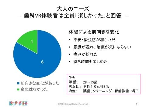 株式会社BiPSEE(東京都渋谷区、代表取締役 松村雅代)は、2018年5月8日より、「BiPSEE歯科VR」のブラッシュアップに協力頂けるパートナー歯科医院の募集を開始します。対象は東京23区内の20歯科医院。2か月間の無料体験を通じ、「患者さんの不安を軽減し、治そうとする力を引き出す歯科治療」を広めていきます。