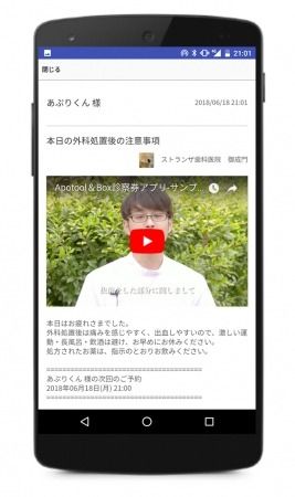 ・術前・術後の注意事項や、来院前のお知らせなどを画像や動画でメッセージ送信
