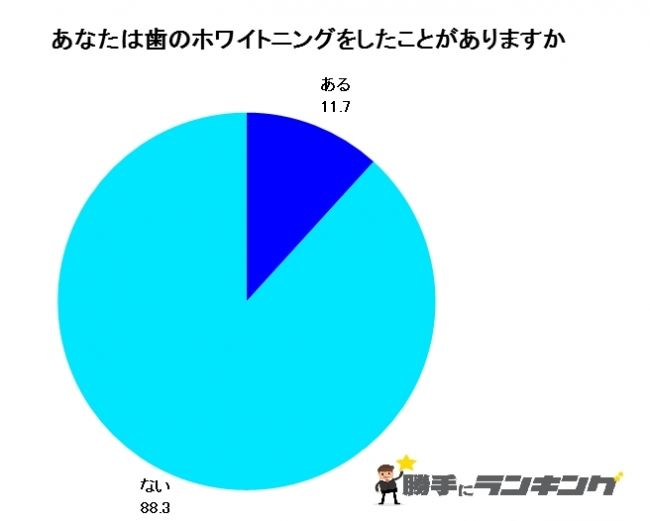 こちらは11.7%の人が「ホワイトニングをしたことがある」と回答。