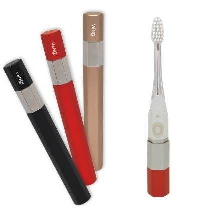 携帯用である「IONPA」は、電動歯ブラシでありながら軽量小型のため、女性でも軽い持ち心地で磨けるとともに、オフィスなどの外出先でも、イオンの力と音波振動で水だけで磨くことができます。ブラシヘッドには、生菌数を24時間で1%以下まで減少させる抗菌毛を採用することで、従来の携帯用歯ブラシで懸念されていたにおいのもとを大幅に削減し、キャップを閉めた後でも清潔に保つことが可能になりました。なお本体カラーは自分らしさを表現できる3色(ブラック、レッド、シャンパンゴールド)からお選びいただけます。